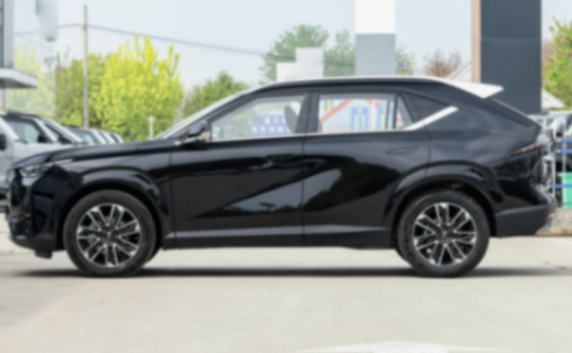 从侧面去看,车辆尺寸不错,长宽高在4685×1901×1690毫米,最关键的是车身轴距达到2750毫米。顶配版的车型轮毂会更大一些,达到19英寸,而低配的是18英寸,造型上倒没有什么大的差异,都是双色处理,往上方去看,表现方面展现了肌肉感,门把手是隐藏式处理。而由于成本的原因,多层隔音玻璃和隐私玻璃都是缺席了。