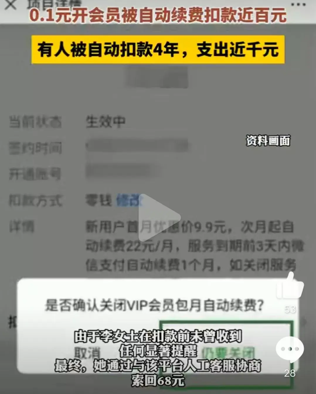 结果你猜怎么着?试用期一过,98元就直接从她的账户里消失了,而且还不是按月扣,是一次性扣了一年的费用!吴女士这才恍然大悟,原来这“免费 试用”就是个幌子,实际上是“买一年会员赠送7天”。